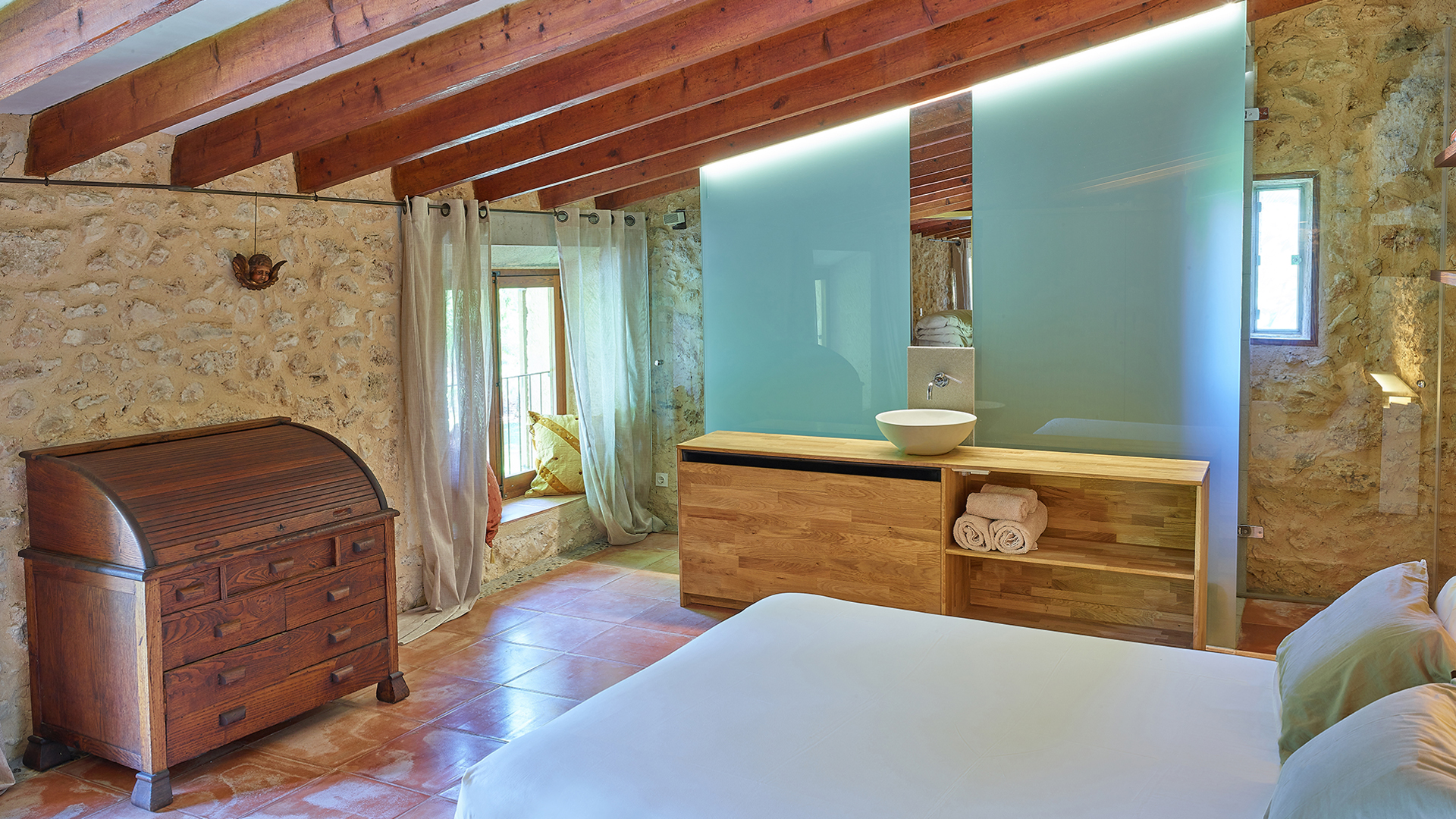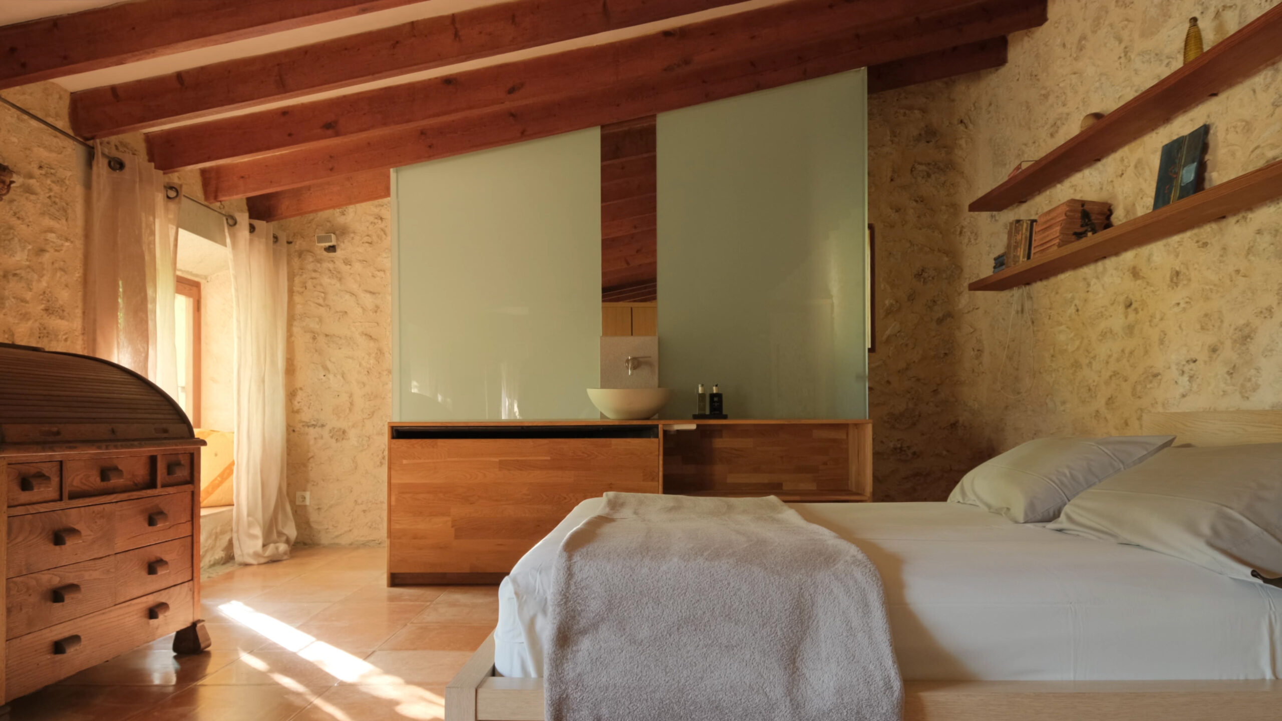 This old orchard and its agricultural buildings have been converted into a four-bedroom house surrounded by extensive cereal fields at the foot of the village of Sencelles. It has ample internal and external spaces, as well as the original waterwheel and irrigation pool, for our ancestors, reconverted into a spectacular swimming pool.